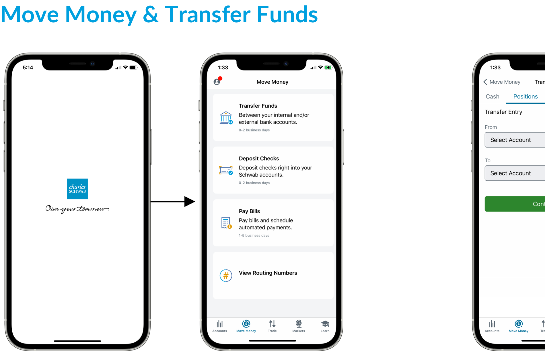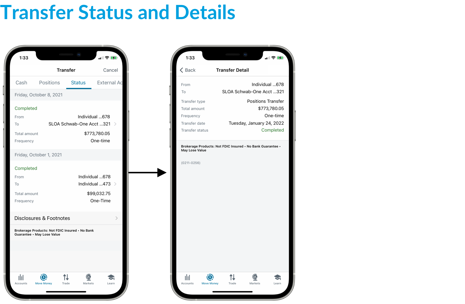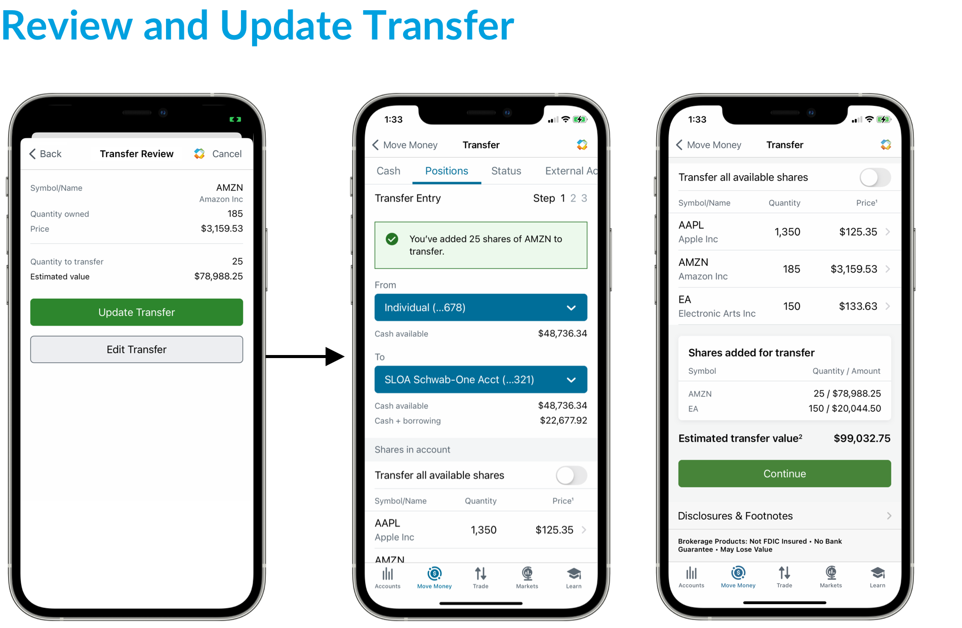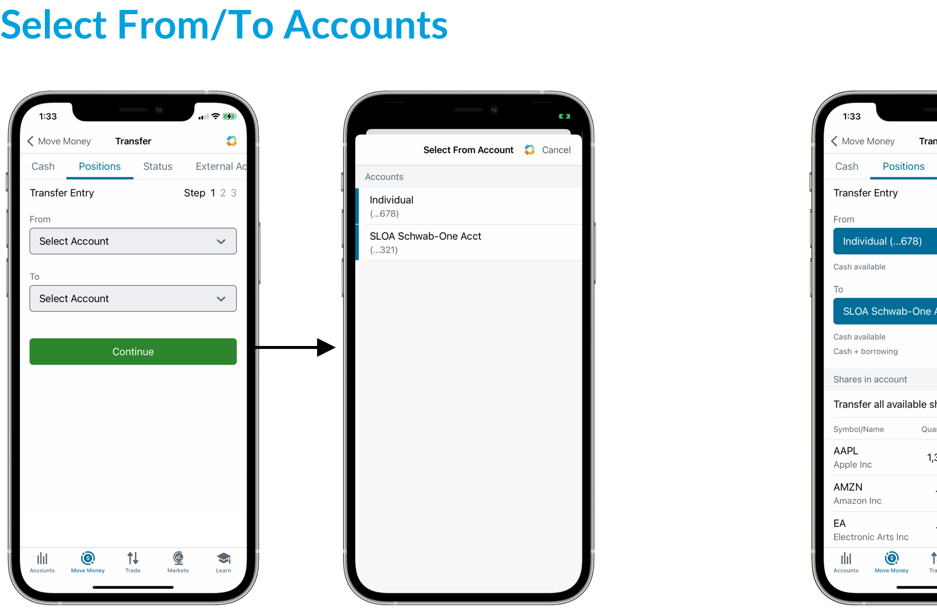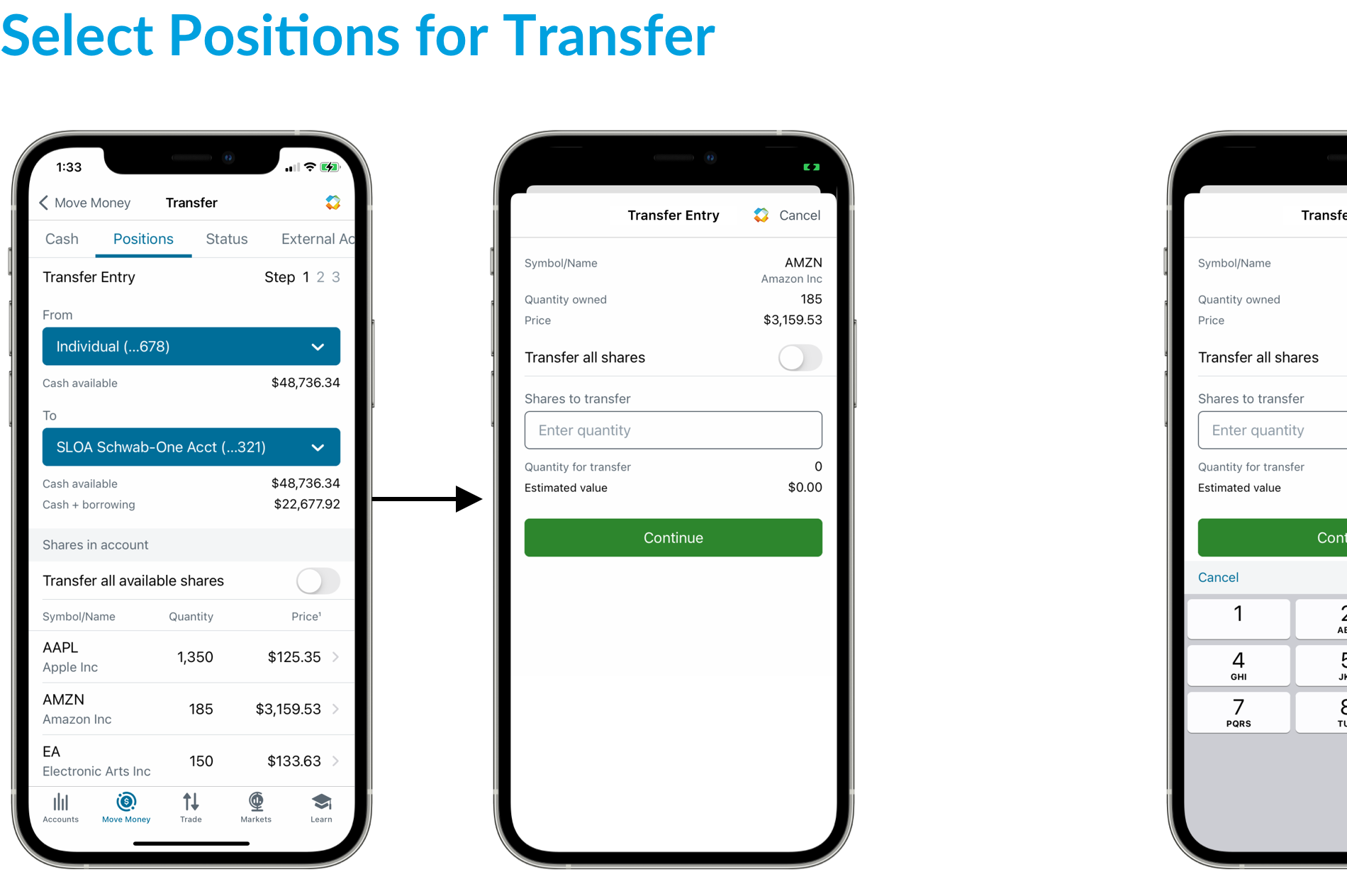 Schwab Mobile, Positions Transfer (iOS + Android)