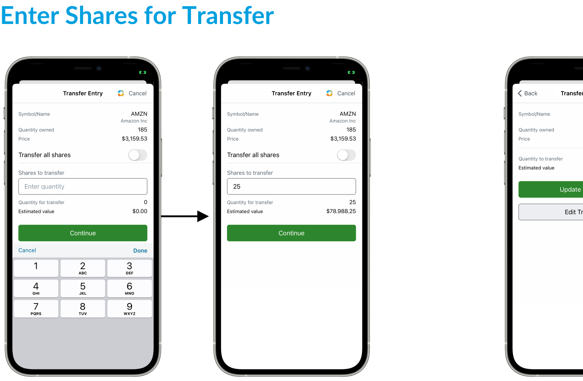 • Update the transfer to include all shares of the selected stock